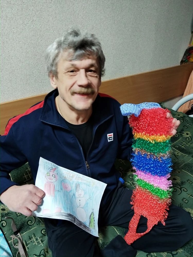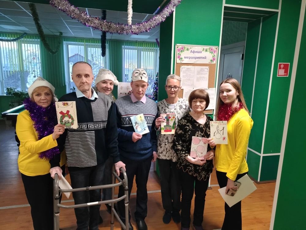 Педагоги и воспитанники старшей группы МБДОУ №15, а также волонтеры школы №9 поздравили проживающих дома – интерната с наступающим Новым годом. Ребята подготовили новогодние рисунки, открытки, чем очень порадовали подопечных нашего учреждения. В стороне не остались и родители воспитанников детского сада. Они передали для получателей социальных услуг связанные своими руками носочки и очень удобные и яркие мочалки.