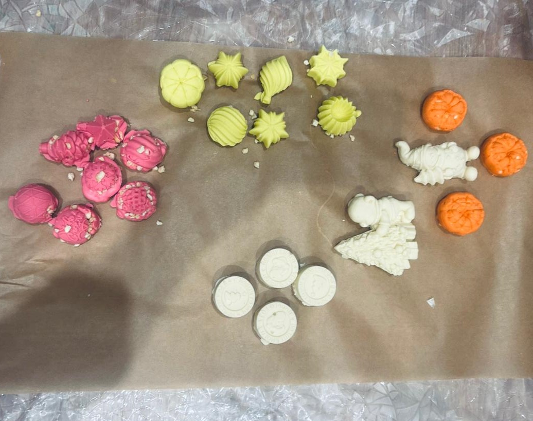 Участники мероприятия активно включились в процесс, формируя разнообразные лакомства из шоколада: яркие мандарины, праздничные ёлочки, оригинальные новогодние украшения и забавные снеговики. Атмосфера была наполнена теплом, радостью и праздничным настроением приближающегося Нового года.