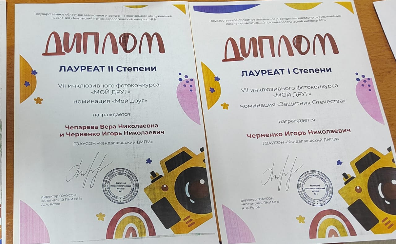 В июле одна из семейных пар, проживающих в наше доме-интернате, приняли участие в VII инклюзивном фотоконкурсе «МОЙ ДРУГ», организаторами которого является ГОАУСОН «Апатитский психоневрологический интернат №1». Вера Николаевна Чепарёва и Игорь Николаевич Черненко представили свои фотоработы в нескольких номинациях. Все друзья, знакомые и сотрудники учреждения активно поддерживали наших конкурсантов.