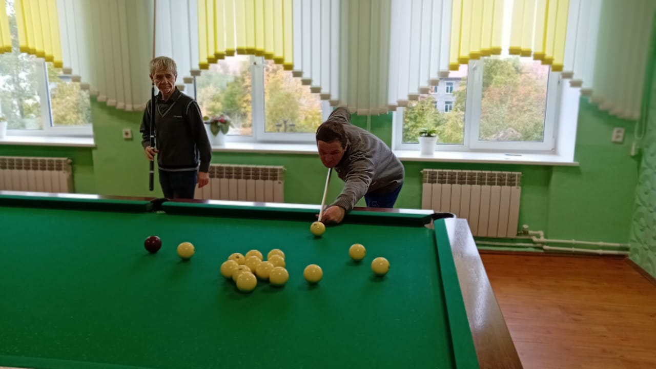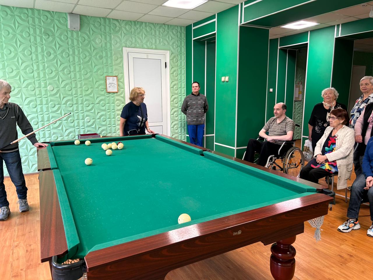 Бильярд – отличная настольная игра, развивающая интеллектуальные способности и координацию движений. Жители нашего дома-интерната очень любят бильярд и часто проводят турниры между сильнейшими игроками. Один из таких турниров состоялся на этой неделе.
