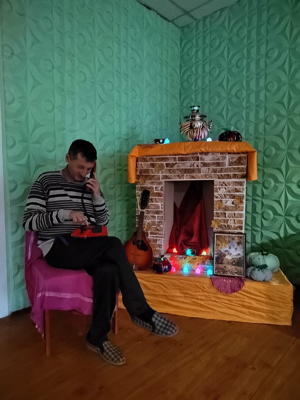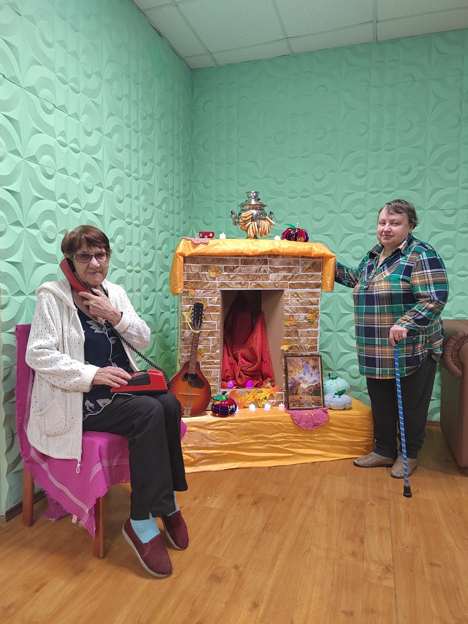 Сотрудники социальной службы совместно с проживающими попытались создать такой уголок уюта в одном из холлов нашего дома-интерната. Участники творческой мастерской «Царство рукоделия» смастерили мягкие игрушки в виде тыквы, подобрали подходящий реквизит и оформили фотозону в осеннем колорите. Теперь каждый желающий может сделать красивую фотографию и запечатлеть настроение осени в уютной обстановке.