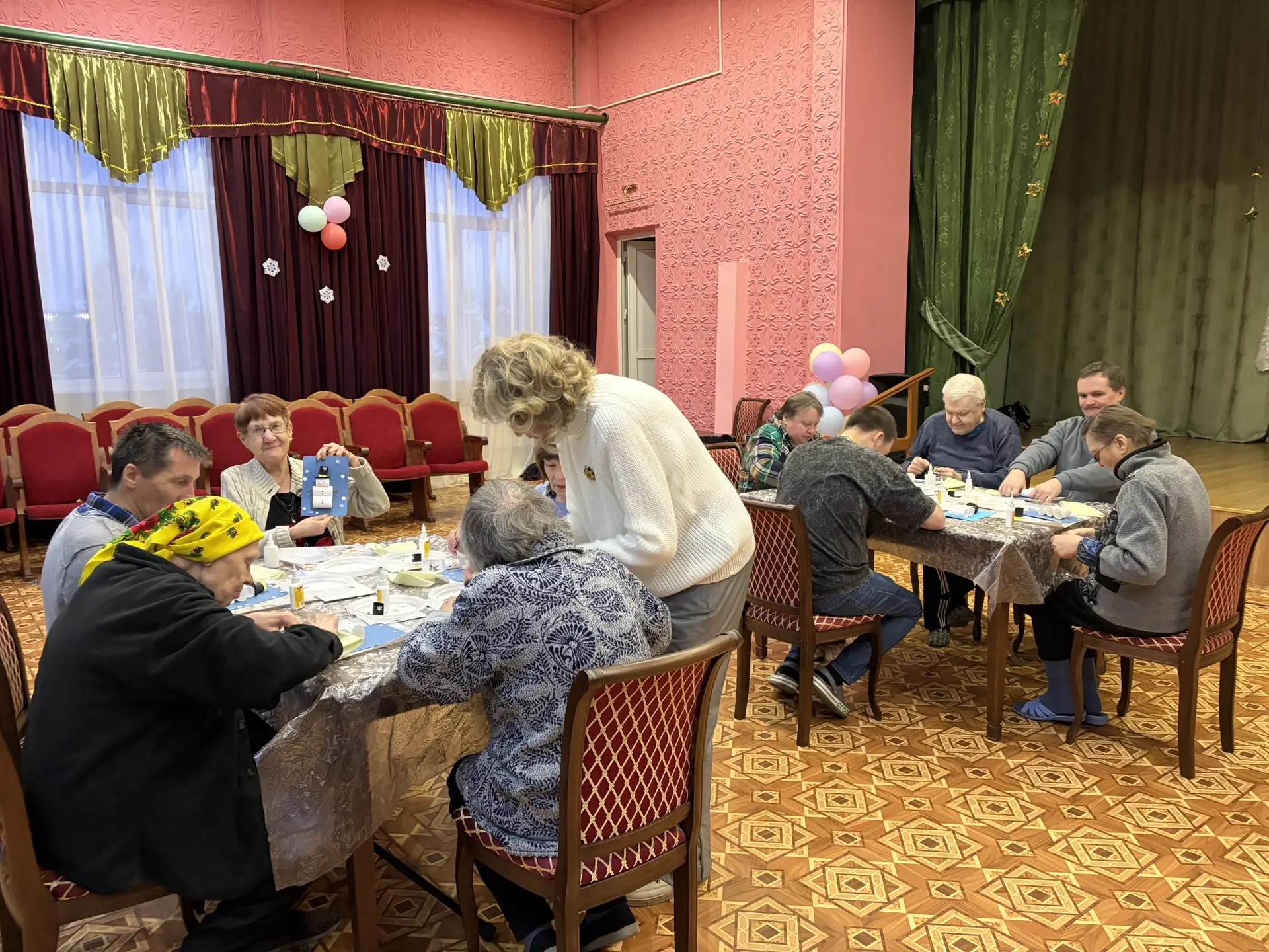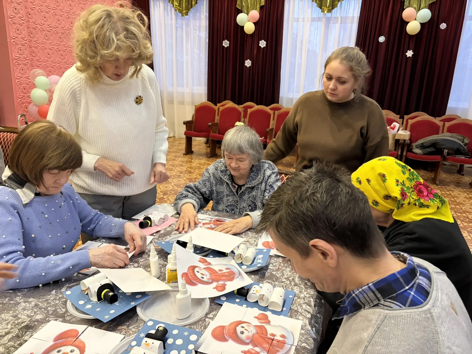 Сегодня в стенах нашего дома-интерната состоялся мастер-класс по изготовлению оригинальной открытки «Веселый снеговик». Мероприятие организовала волонтёр Марина Рейновна Конухина, которая регулярно проводит необычные творческие занятия для наших проживающих. В этот раз программа включала изготовление объёмной аппликации, сборку пазлов и проведение развлекательных игр.