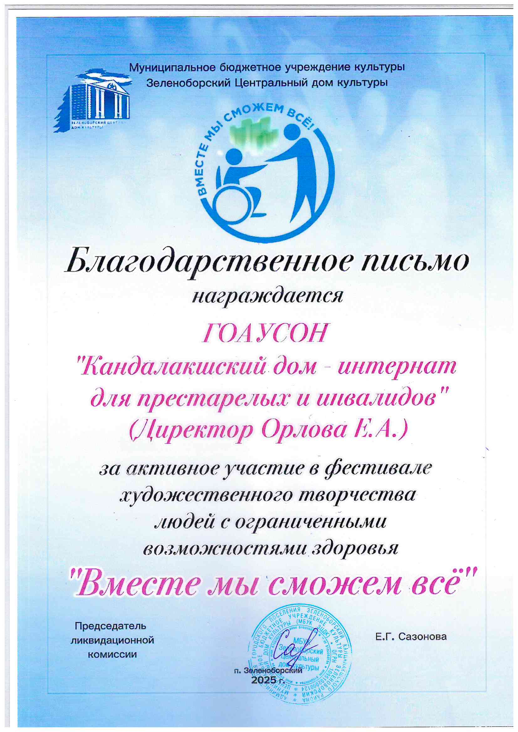 Под таким названием в поселке Зеленоборском в Центральном доме культуры ежегодно проводится фестиваль художественного творчества людей с ограниченными возможностями здоровья. Наше учреждение традиционно принимает участие в этом мероприятии.